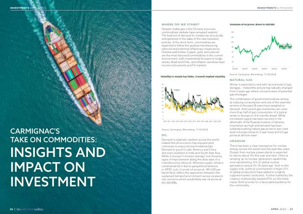 Despite challenges in the Chinese economy , commodities markets have remained resilient . The bedrock of demand for metals has structurally strengthened in the wake of the new transition policies . In the short term , commodities are expected to follow the gradual manufacturing rebound and potential reflationary measures by Chinese authorities . Copper , gold , and uranium are the most favoured commodities in the current environment , with investments focused on single stocks , Brazil and Chile , and inflation-sensitive fixed income instruments and FX markets .