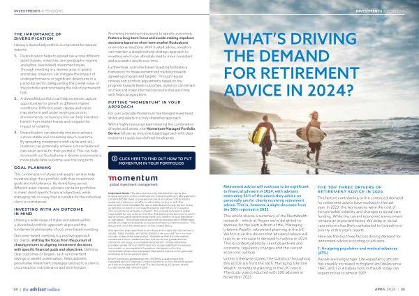 This article shares a summary of the NextWealth research – which at Aegon we ’ re delighted to sponsor for the sixth edition of the ‘ Managing Lifetime Wealth : retirement planning in the UK ’. We focus on the drivers that advisers believe will lead to an increase in demand for advice in 2024 . This is contextualised by client objectives and concerns , regulatory changes and the current economic outlook .