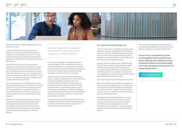 For years, we’ ve assumed that two things would eventually help to move the dial. The first was technology. There’ s no doubt that technology has introduced efficiencies and improved the quality of outputs for clients. But, as I mentioned previously, it hasn’ t significantly increased the number of people receiving advice. The reason, in my view, is that whilst technology has created efficiencies, those gains have been offset by continued regulatory change and rising expectations placed upon advisers- most recently through Consumer Duty.